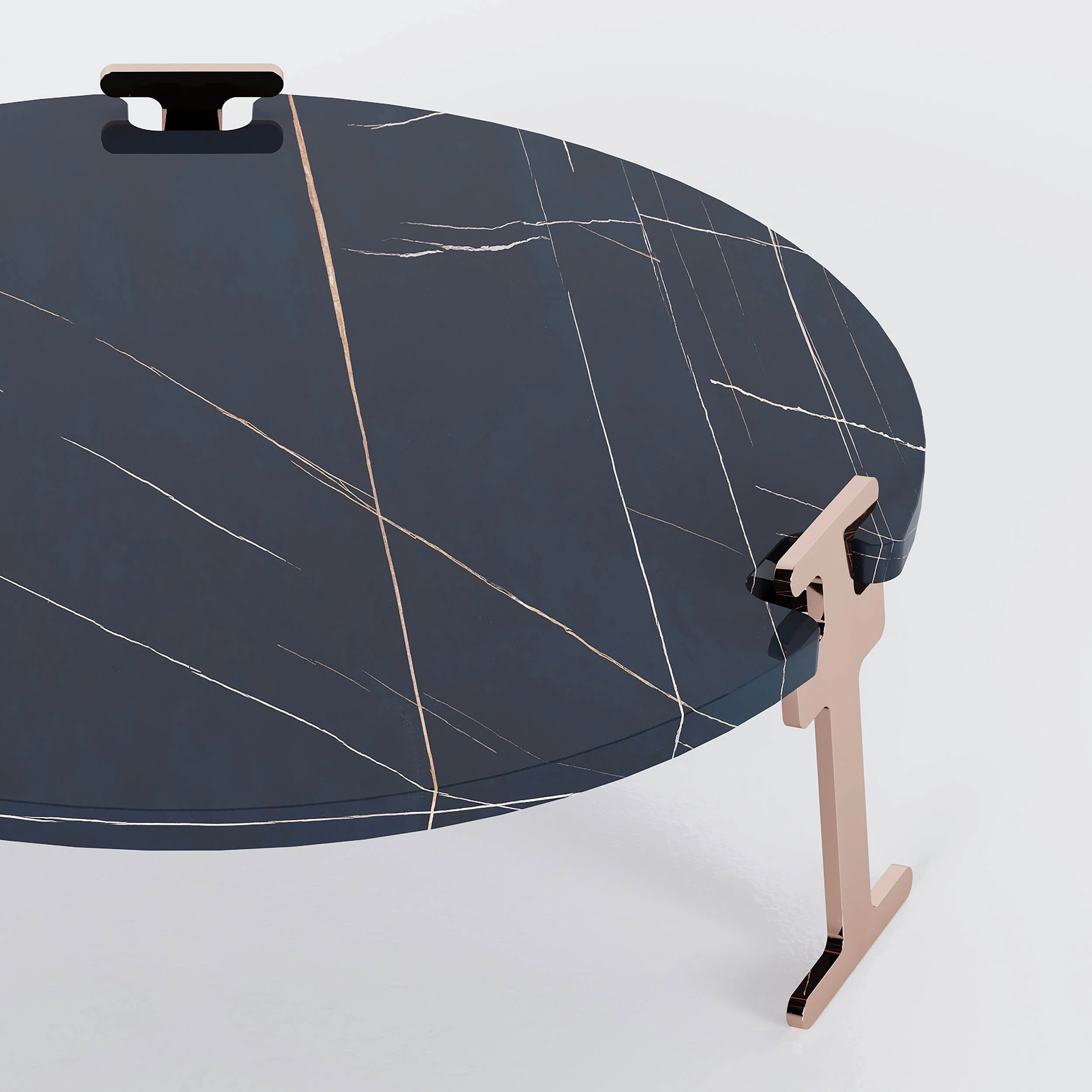 3 CM THICK, SAHARA NOIR MARBLE WITH COPPER BASE AND DETAILS.